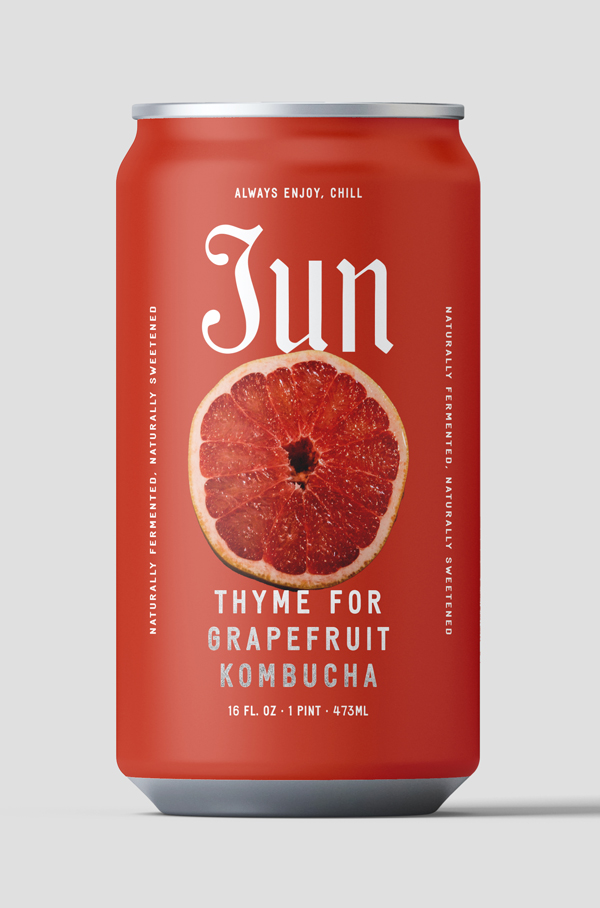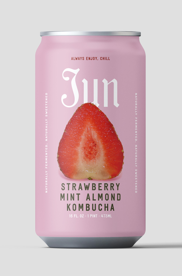 The Jun Kombucha identity strikes a balance between elegance and approachability, with a hand-chiseled logotype and editorial language that humanizes the brand and introduces its flavor-forward personality.